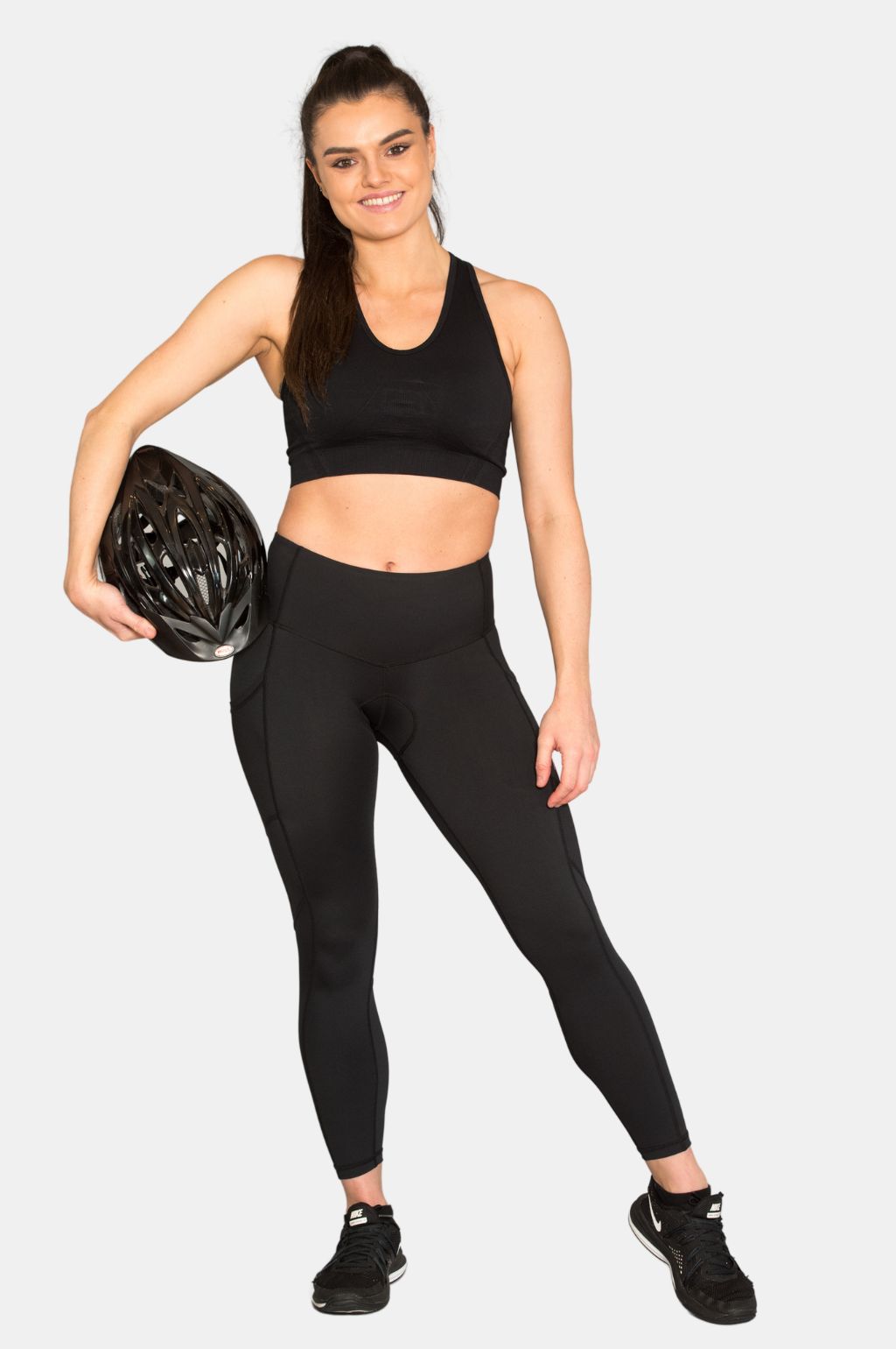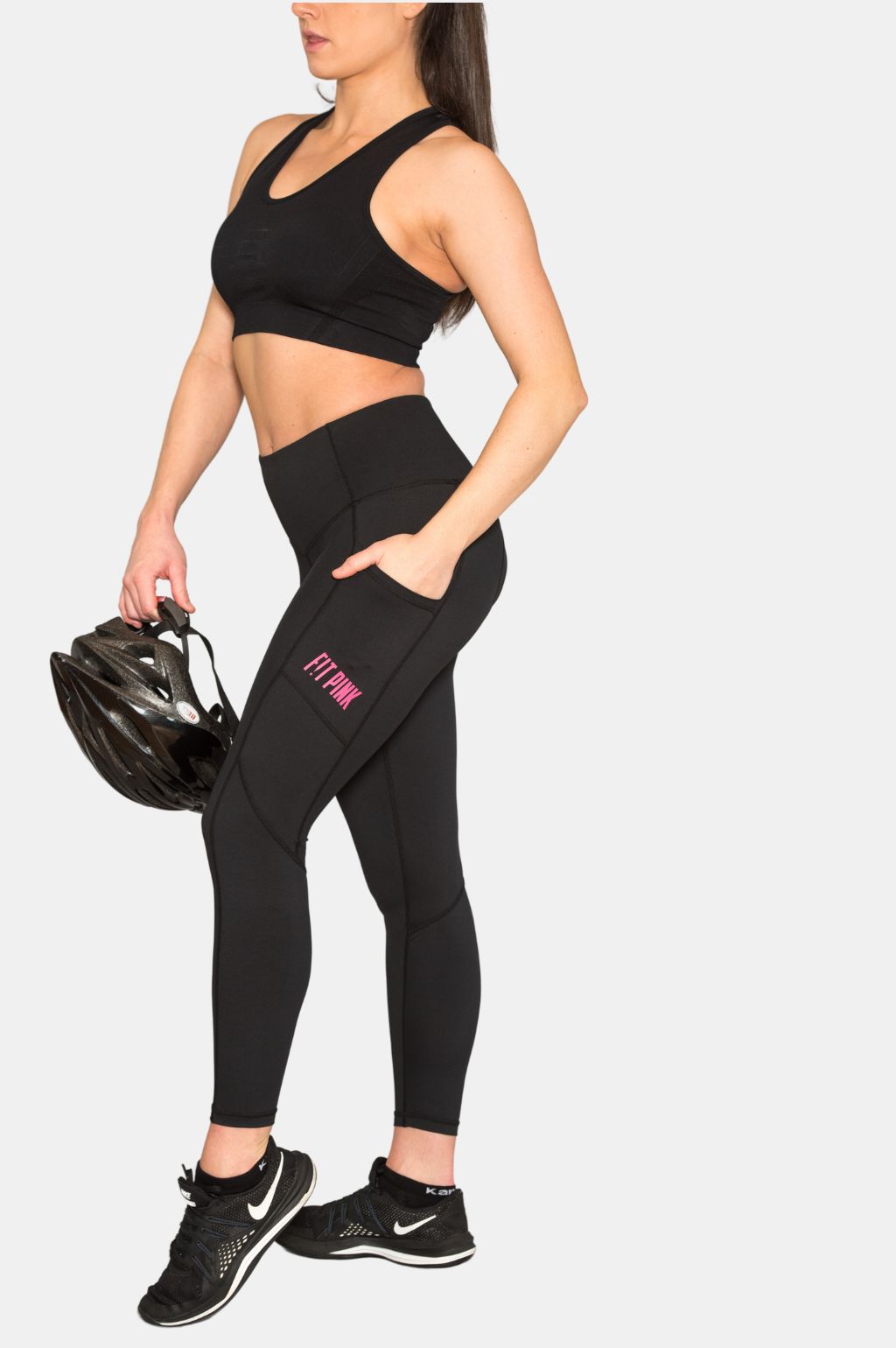 Our FitPink Padded Cycle Leggings are a brand new technical legging, designed specifically for cyclists needs. The foam-padded chamois has been selected and tested by cyclists. The fabric is designed to be supportive, sweat wicking and breathable. The super high waist and fit ensures they are non-slip and stay in place while cycling. They have our favourite feature - deep side pockets to hold all your cycling essentials. These padded cycle leggings are loved by female cyclists everywhere!