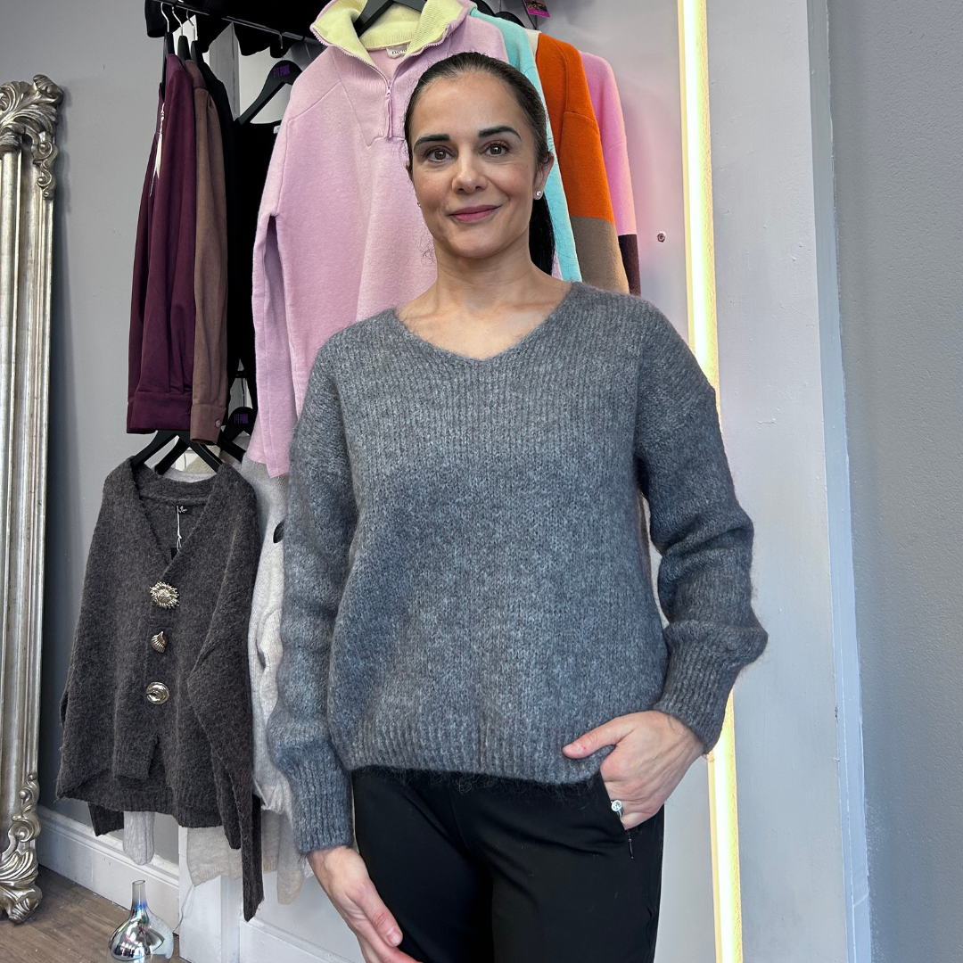 Wrap yourself in effortless comfort with our Grey Mohair Wool Mix Jumper – the perfect throw-on piece for cosy, everyday styling. Designed in a relaxed one size fits all, the soft mohair blend gives a luxe, fluffy finish, making it ideal for layering over leggings, jeans or tailored pants. Whether you’re dressing it up or keeping it casual, this jumper is a wardrobe staple you’ll reach for season after season.