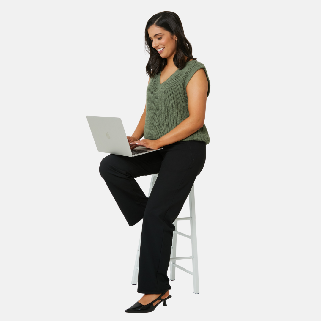 Just like their big sister - the slim leg pants;  the straight leg version are designed in a soft brushed fabric and a straight fit at the leg. These trousers are smart enough to wear to work, but with the real comfort and stretch you love about activewear. High-waisted and flattering